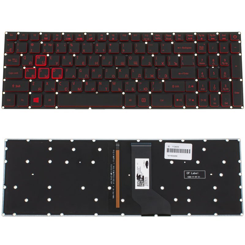 Клавіатура до ноутбуку ACER (Nitro: AN515-41) російська розкладка, чорний колір, без фрейму, підсвітка клавіш (Оригінал)
