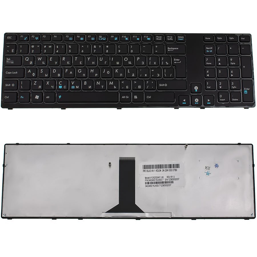 Клавіатура до ноутбуку ASUS (K93, K95), російська розкладка, чорний колір — оригінальна або сумісна заміна клавіатури для моделей ноутбуків ASUS K93 та K95. Виготовлена з міцних матеріалів, має стандартний розклад і маркування клавіш кирилицею (російська розкладка), чорне покриття корпусу та клавіш для акуратного і професійного вигляду.