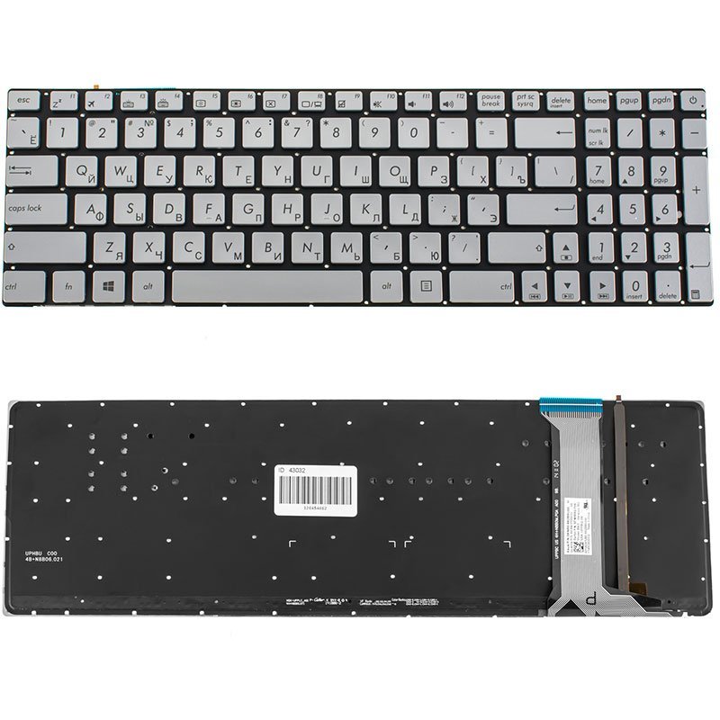 Клавіатура до ноутбуку ASUS (N551, N751 серій) російська розкладка, сріблястий колір, без фрейму, підсвітка клавіш