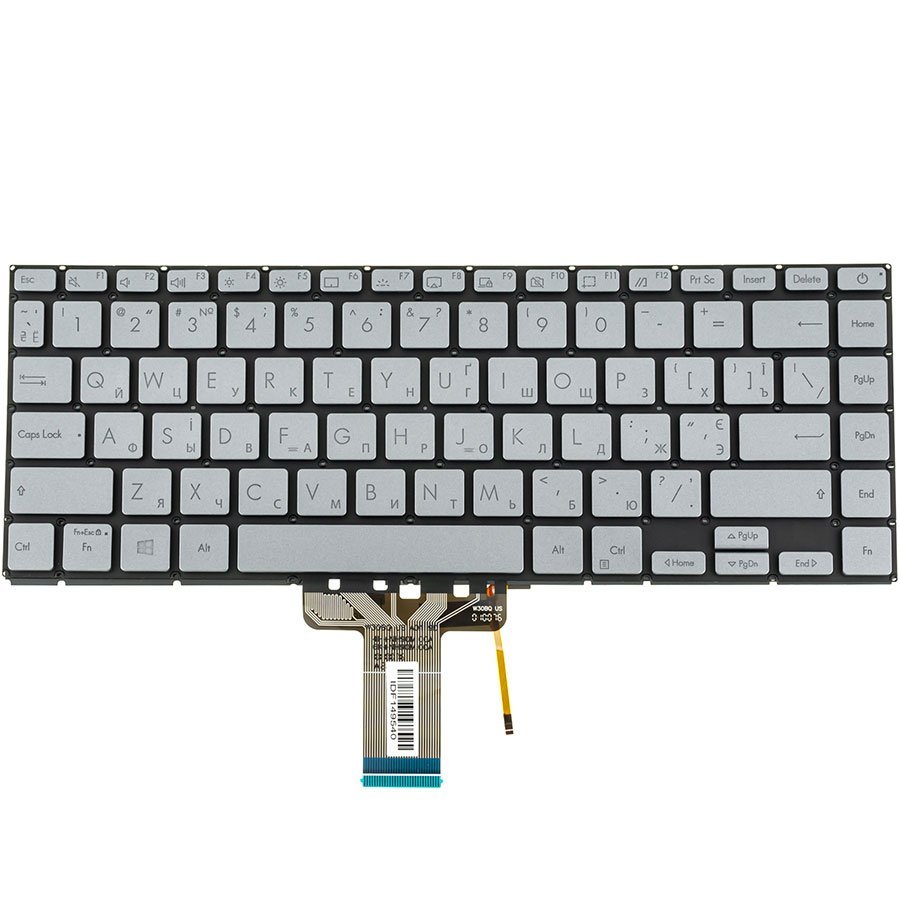 Клавіатура до ноутбуку ASUS (X421 серій) українська розкладка, сірий колір, без фрейму, підсвітка клавіш (Оригінал)