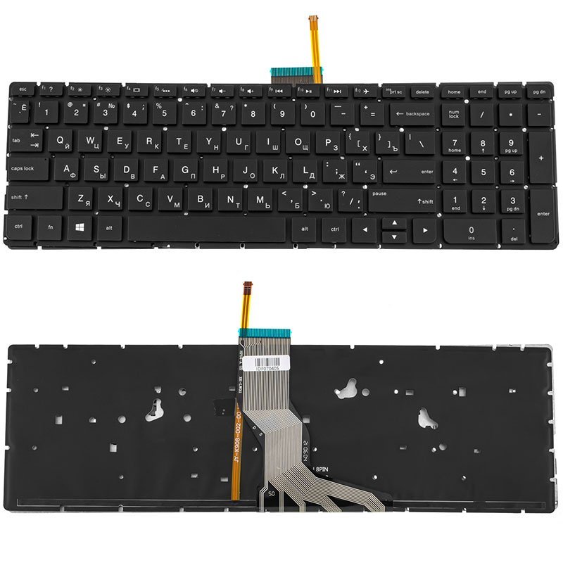 Клавіатура до ноутбуку HP (Pavilion: 15-AK) російська розкладка, чорний колір, без фрейму, підсвітка клавіш — сумісний замінник оригінальної клавіатури, призначений для заміни пошкодженого або зношеного модуля.