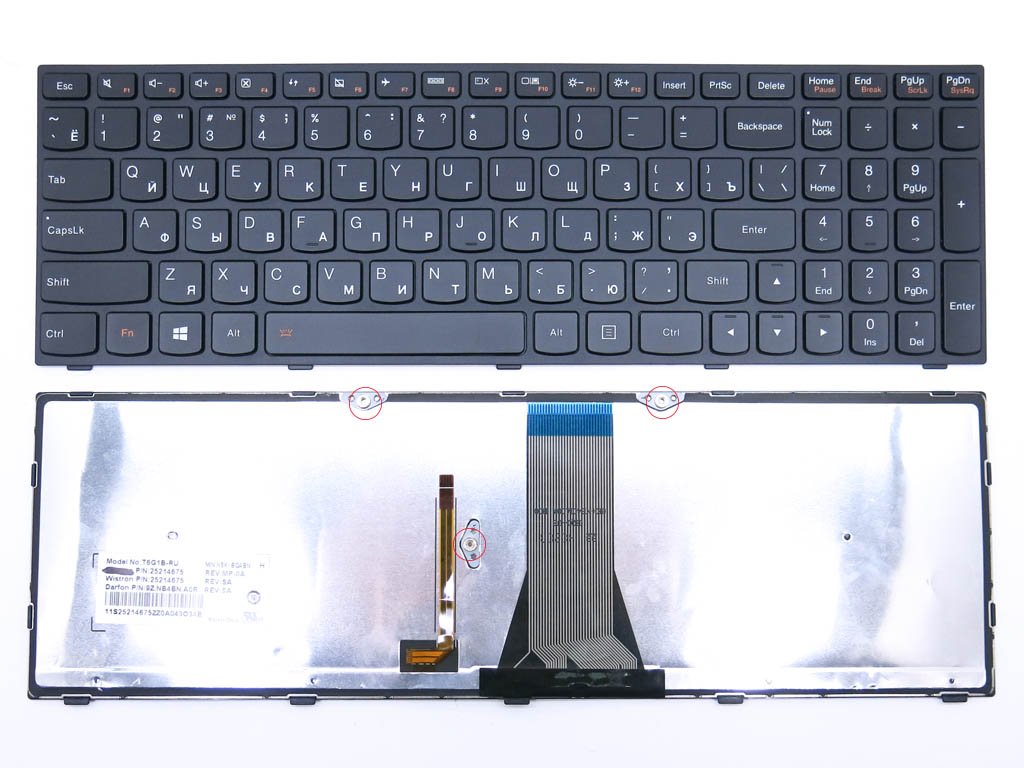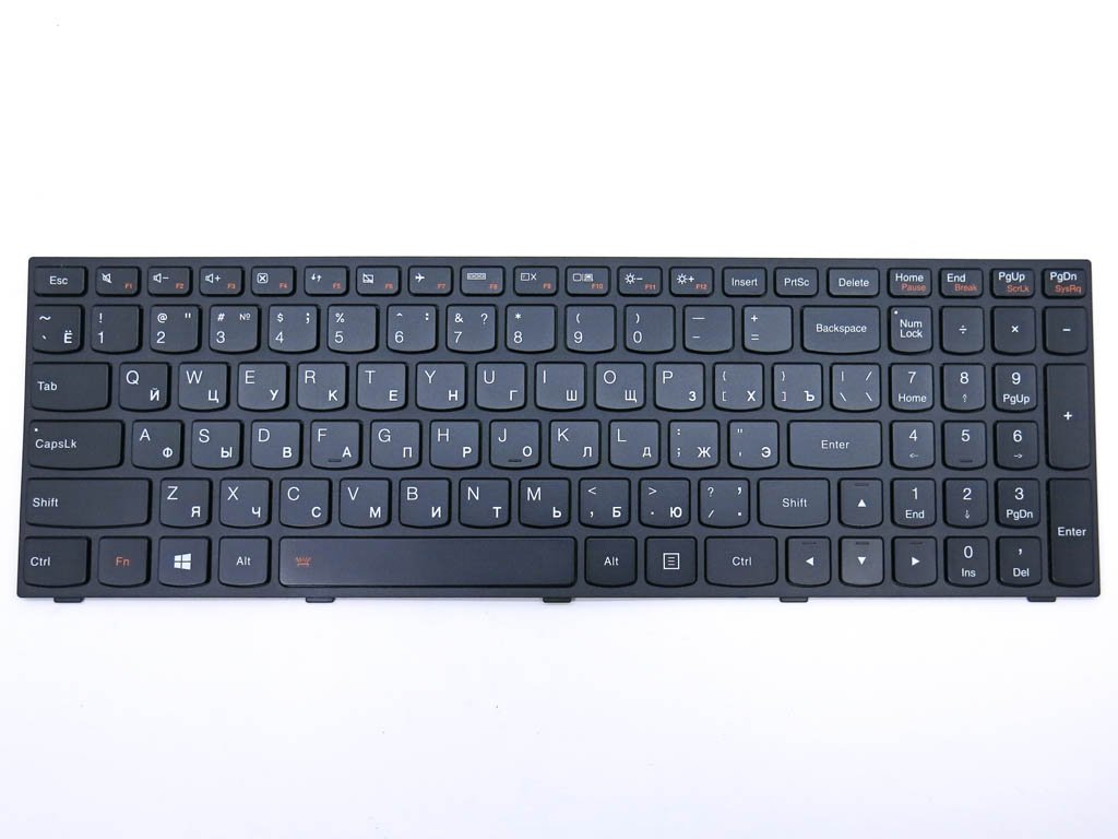 Клавіатура з підсвіткою для LENOVO IdeaPad G50, G50-30, G50-45, G50-70, G70, G70-70, G70-80, Z50-70, Z50-75, Z70-80 — RU розкладка, чорна, з чорною рамкою