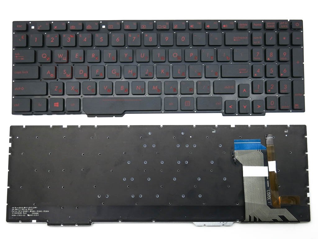 Клавіатура для ASUS GL553, GL553V, GL553VW, ZX73, FX553VD, ZX553VD, ZX53V, FX53VD, FX753VD, FZ53V (RU, Black, без рамки, з підсвіткою), оригінал