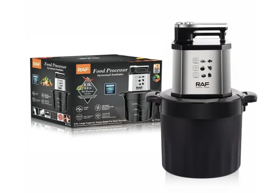 Кухонний комбайн RAF R.7731 — практичний помічник для щоденного використання на кухні. Корпус із нержавіючої сталі забезпечує надійність та довговічність, а містка чаша на 8 л дозволяє готувати інгредієнти для всієї родини. У комплекті передбачено подрібнювач — зручно для швидкої підготовки продуктів.