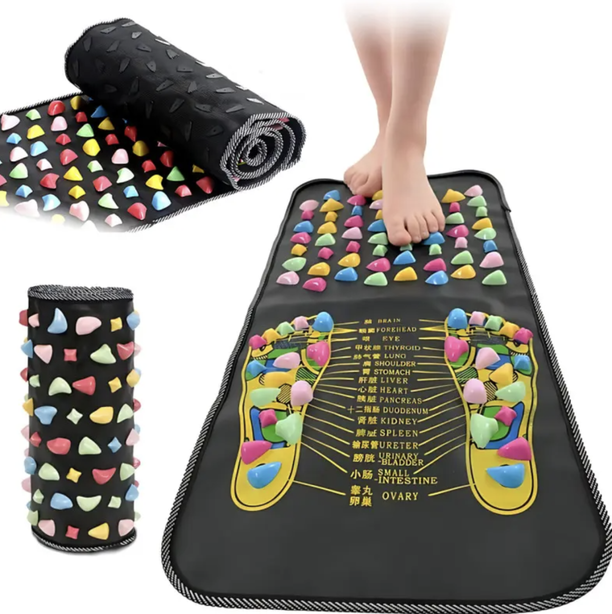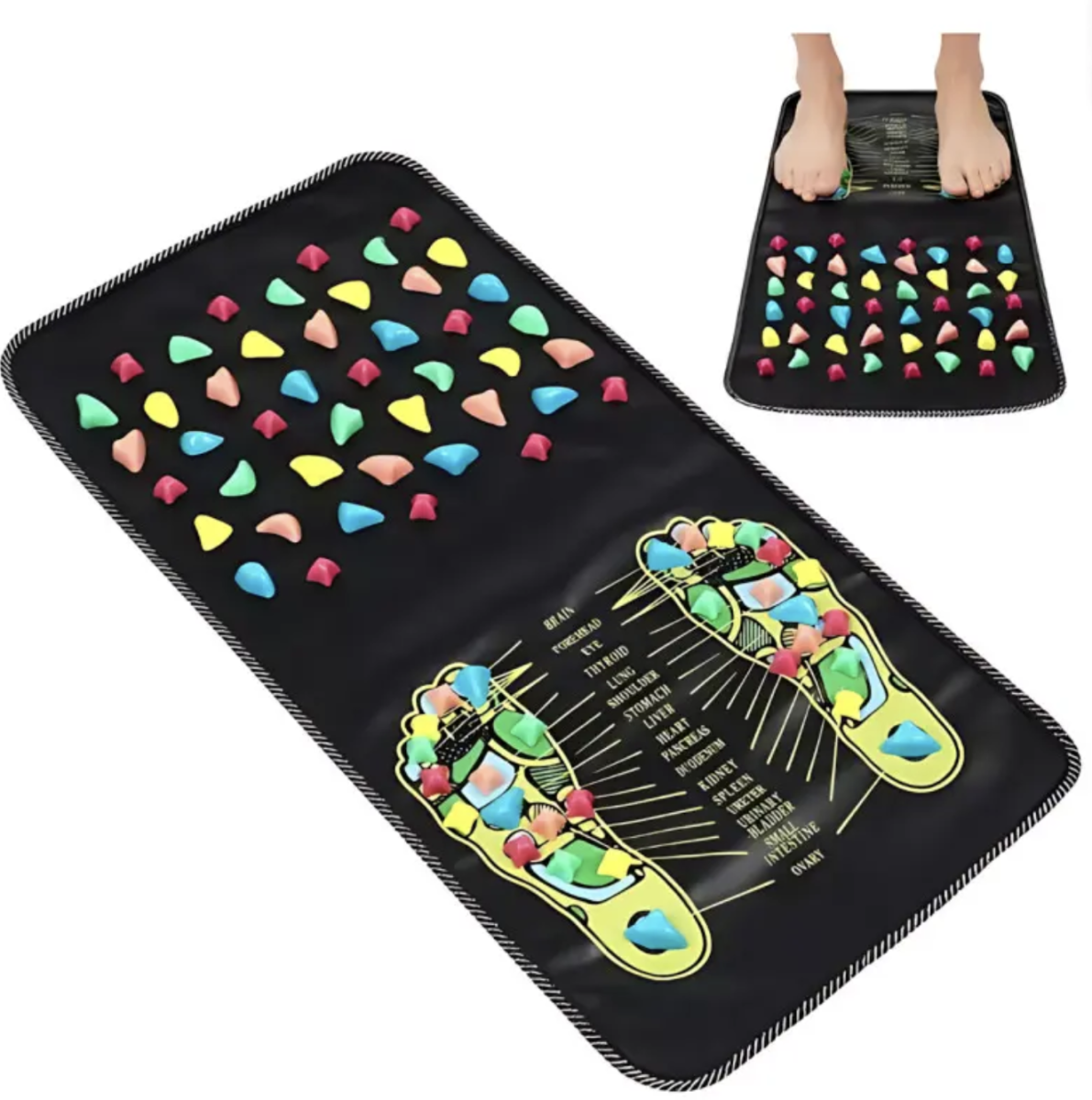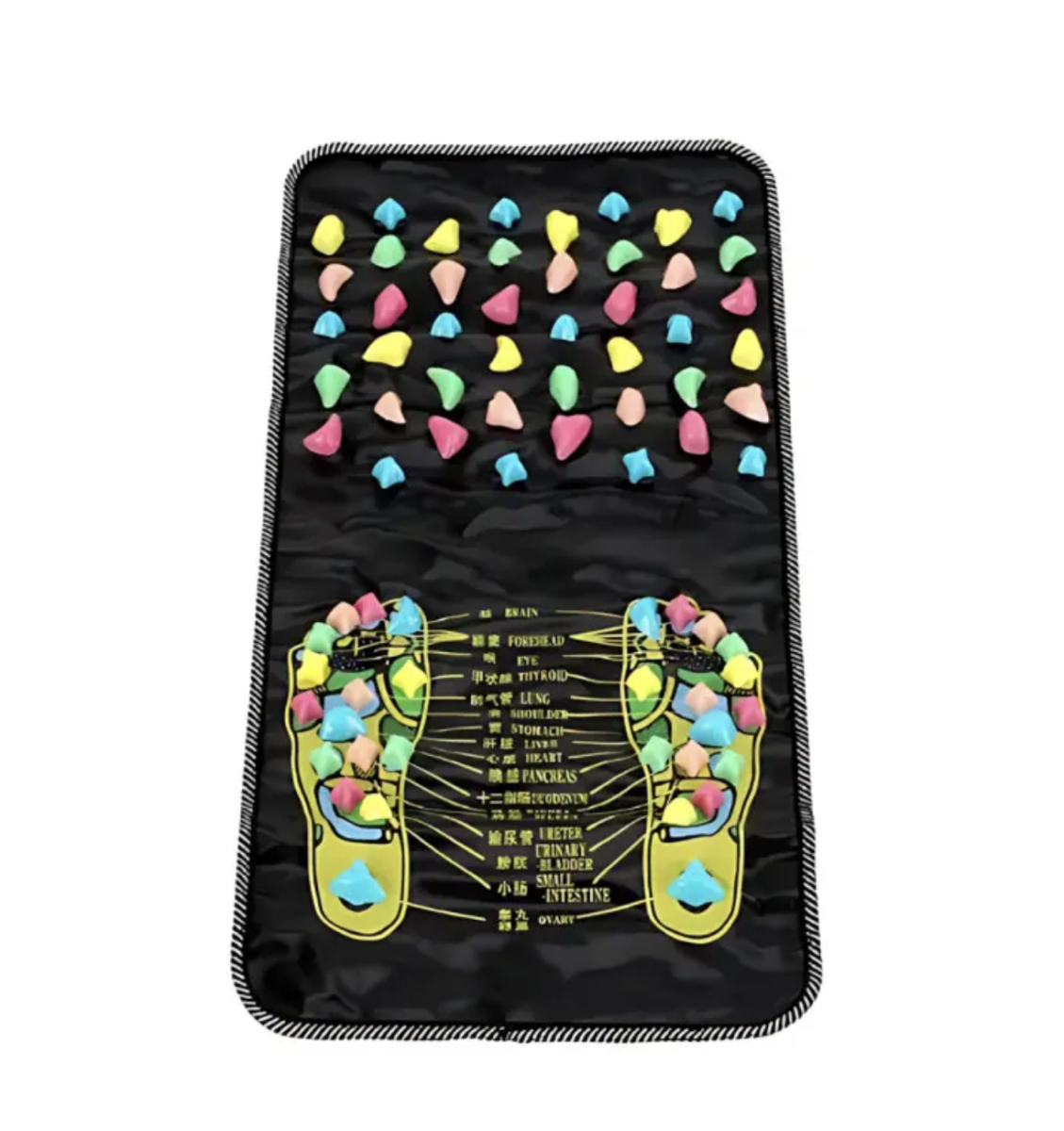 Масажний килимок для ніг з камінцями 35×70 см — практична масажна доріжка для щоденного використання. Підходить для масажу стоп, а також може використовуватись для спини. Камінці створюють приємний точковий вплив під час натиску, допомагаючи розслабитись після активного дня.