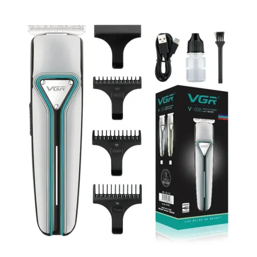Машинка-тример VGR V-008, акумуляторна USB, для волосся/бороди/вусів, LED, насадки