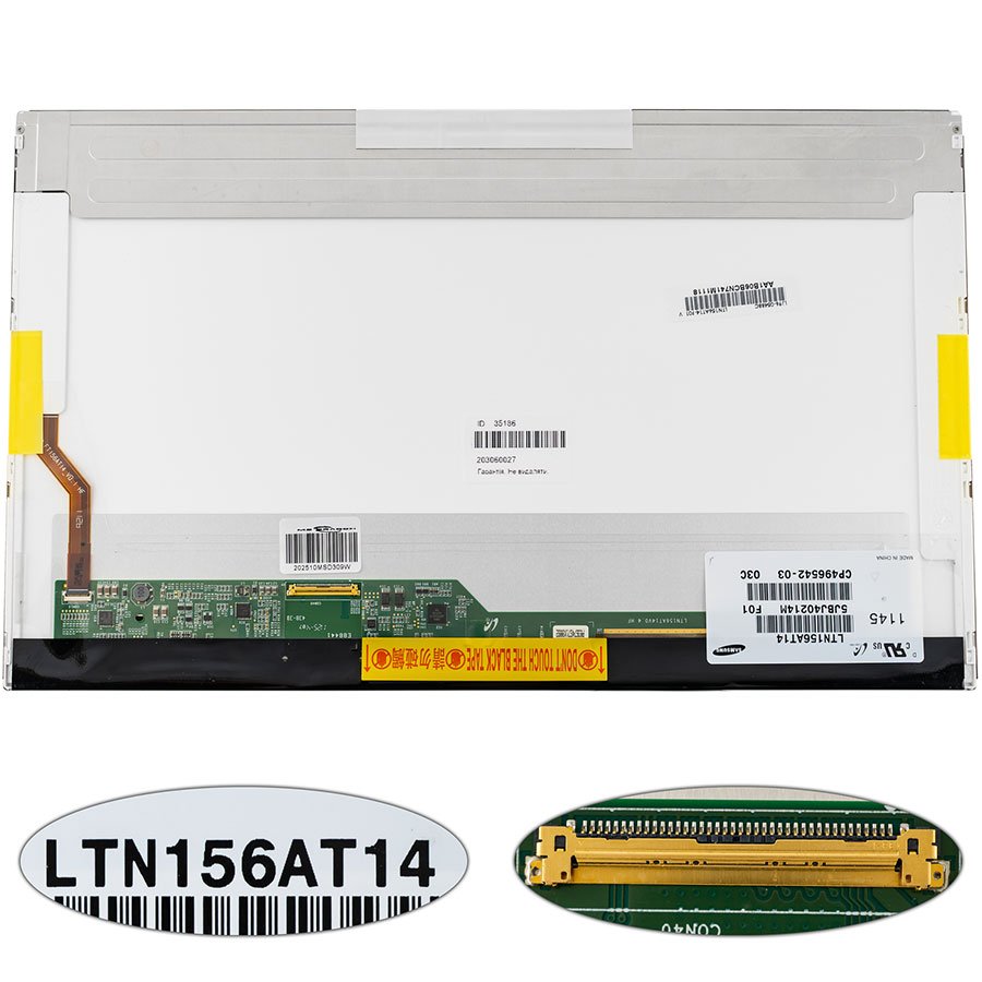 Матриця 15.6" LTN156AT14 1366×768 LED 40pin глянцева, роз’єм зліва знизу (renew)