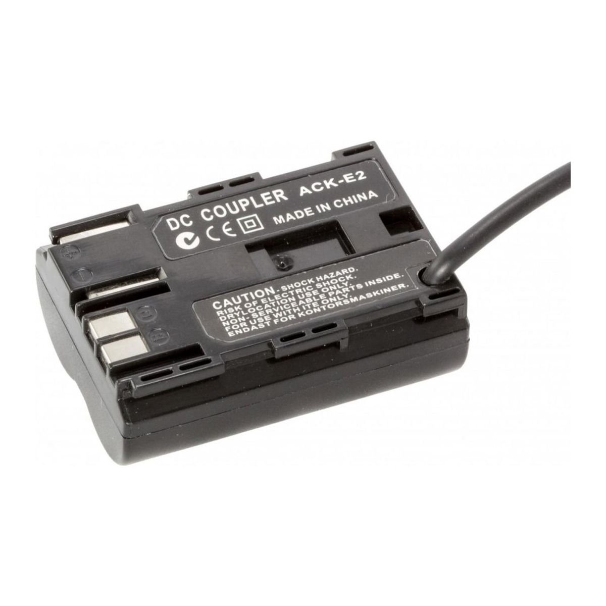- У комплект Canon ACK-E2 Kit входить мережевий адаптер живлення та спеціальний ACK-E2 DC Coupler – «імітатор» батареї Canon BP-511 – який стає батарейним відсіком камери. Призначений для стаціонарного використання фотоапарата без використання ресурсу акумулятора. Незамінний для студійної фото та ведозйомки.