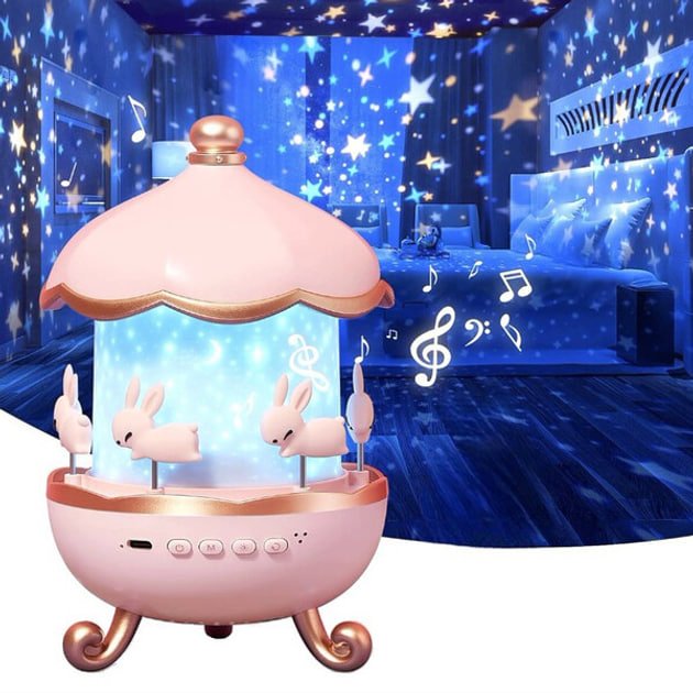 Музичний LED нічник «Карусель зайчиків» Bluetooth, обертання + 6 змінних картинок