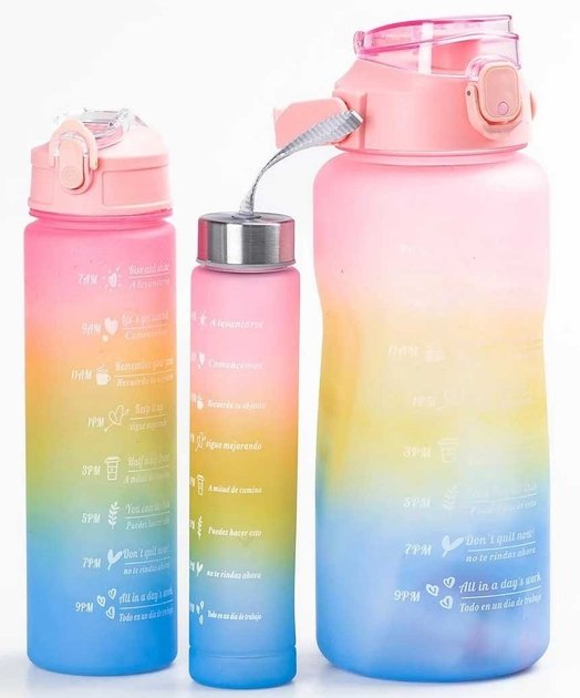 Набір багаторазових пляшок для води 300/900/2000 мл, 3 шт, харчовий пластик