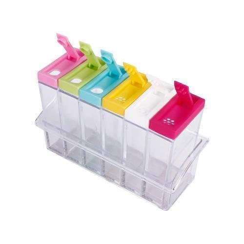 Набір ємностей для спецій Seasoning Six Piece Set — практичний кухонний набір для зручного зберігання та використання спецій щодня. Компактна спецівниця на підставці допомагає підтримувати порядок на кухні, а ємності з екопластику підходять для регулярного використання.