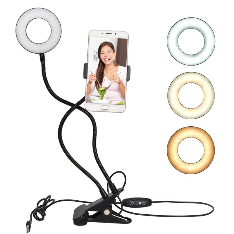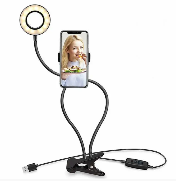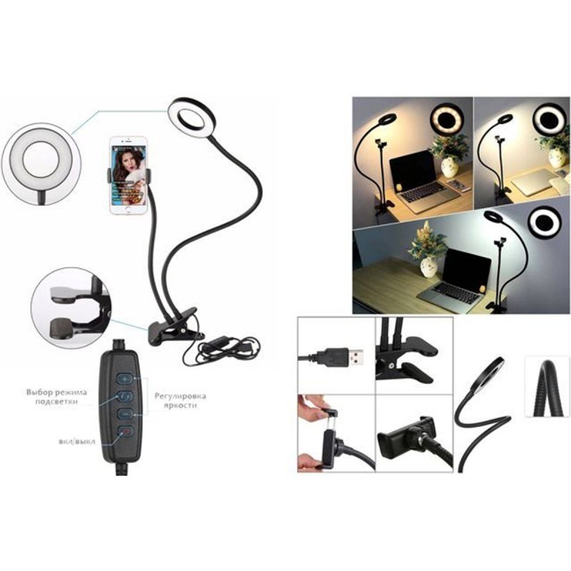 Набір для стріму: LED кільцева лампа з гнучким тримачем телефону, тепле/холодне світло, USB