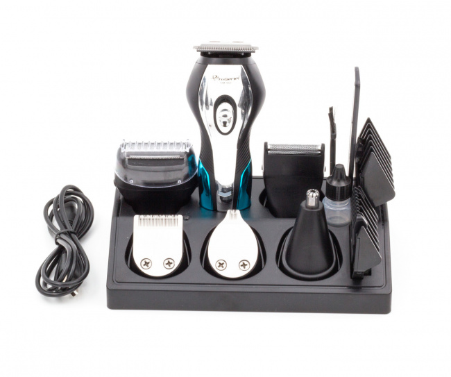 ```Набір для стрижки Gemei GM-562 10 в 1 — універсальна машинка-тример з насадками для догляду за волоссям і бородою. Підійде для домашнього використання: акуратна стрижка, підрівнювання контурів та щоденний догляд.