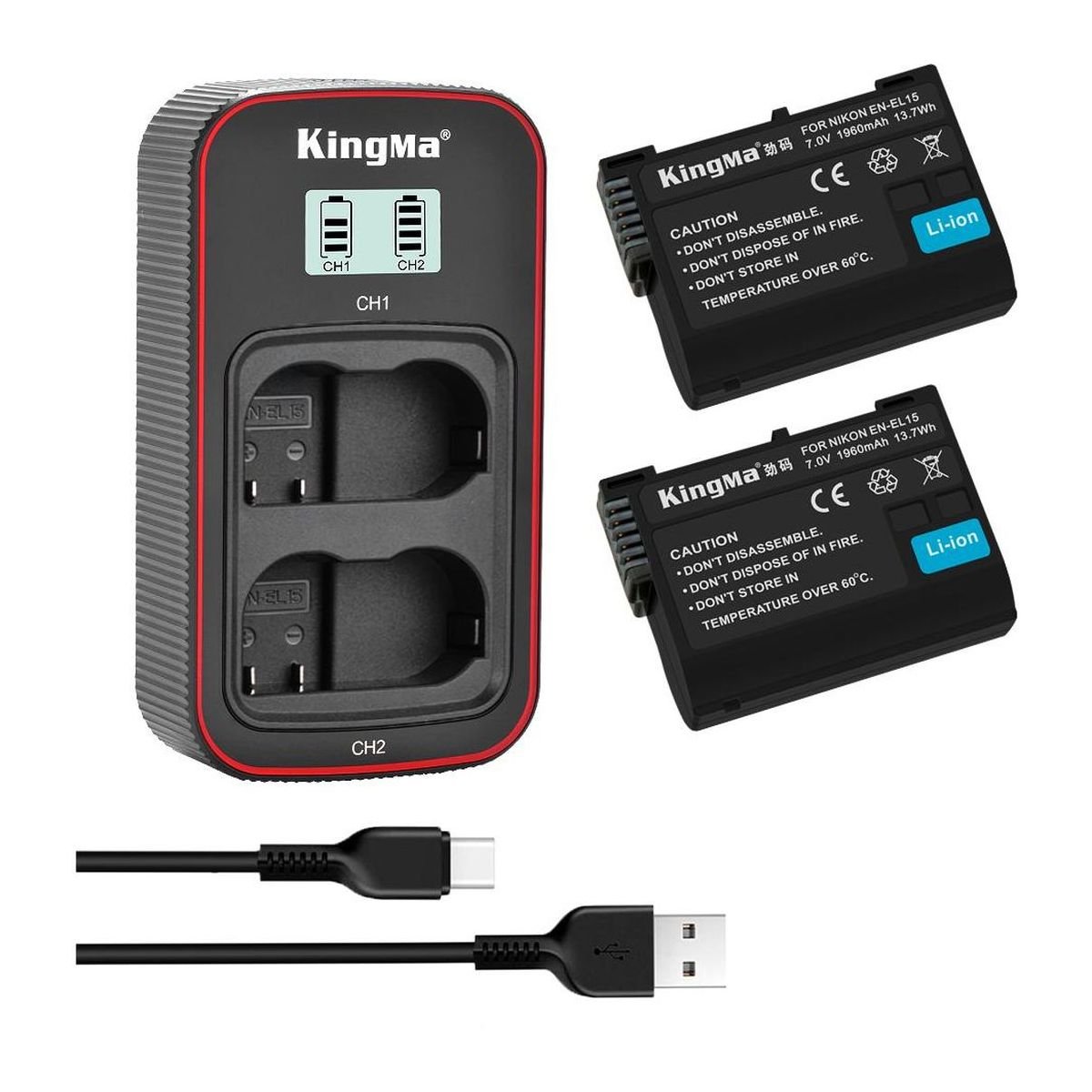 BestBatt 3-Pack KingMa Nikon EN-EL15 — практичний набір для фотографів і відеографів: 2 акумулятори KingMa EN-EL15 та 1 зарядний пристрій на дві батареї. Підійде як запасне живлення для щоденного знімання та поїздок. Якісний і надійний комплект для регулярного використання.