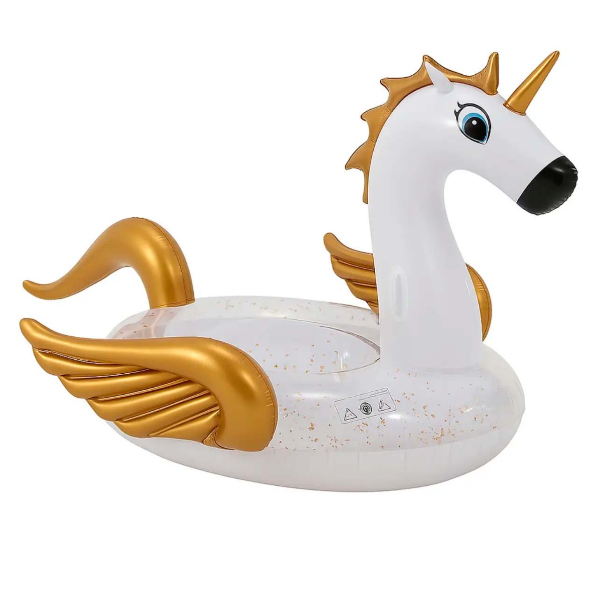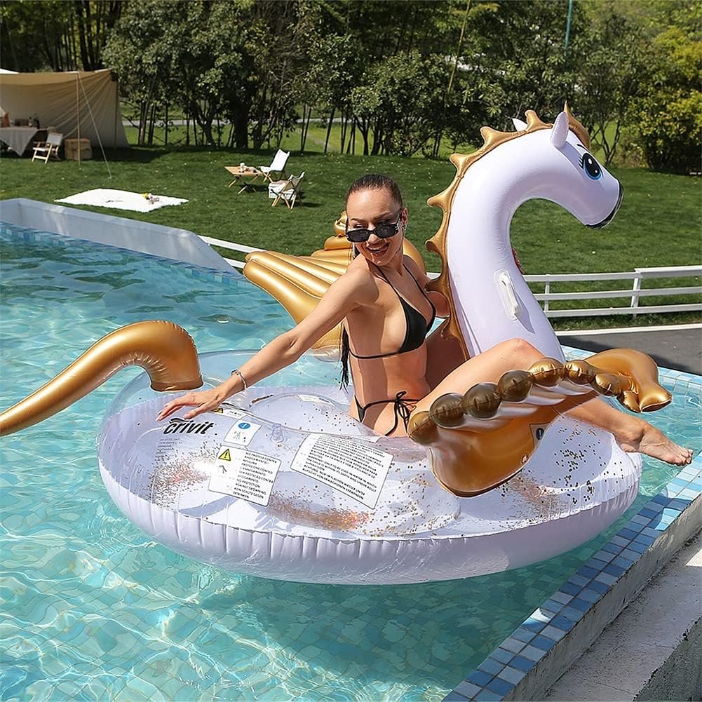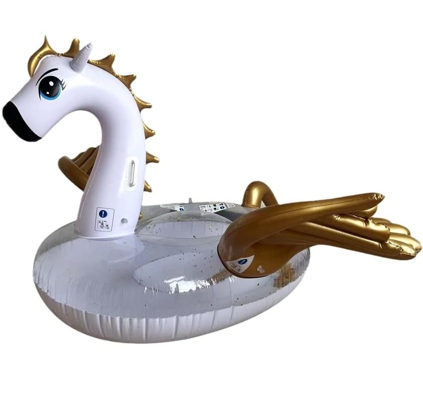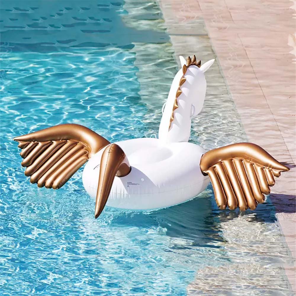 Надувне коло у вигляді єдинорога-пегаса з золотими крилами — стильний аксесуар для відпочинку на воді, плавання в басейні та яскравих фотосесій. Великий розмір забезпечує комфорт під час використання. Товар виконаний якісно та надійно, підходить для щоденного використання за умови дбайливої експлуатації.