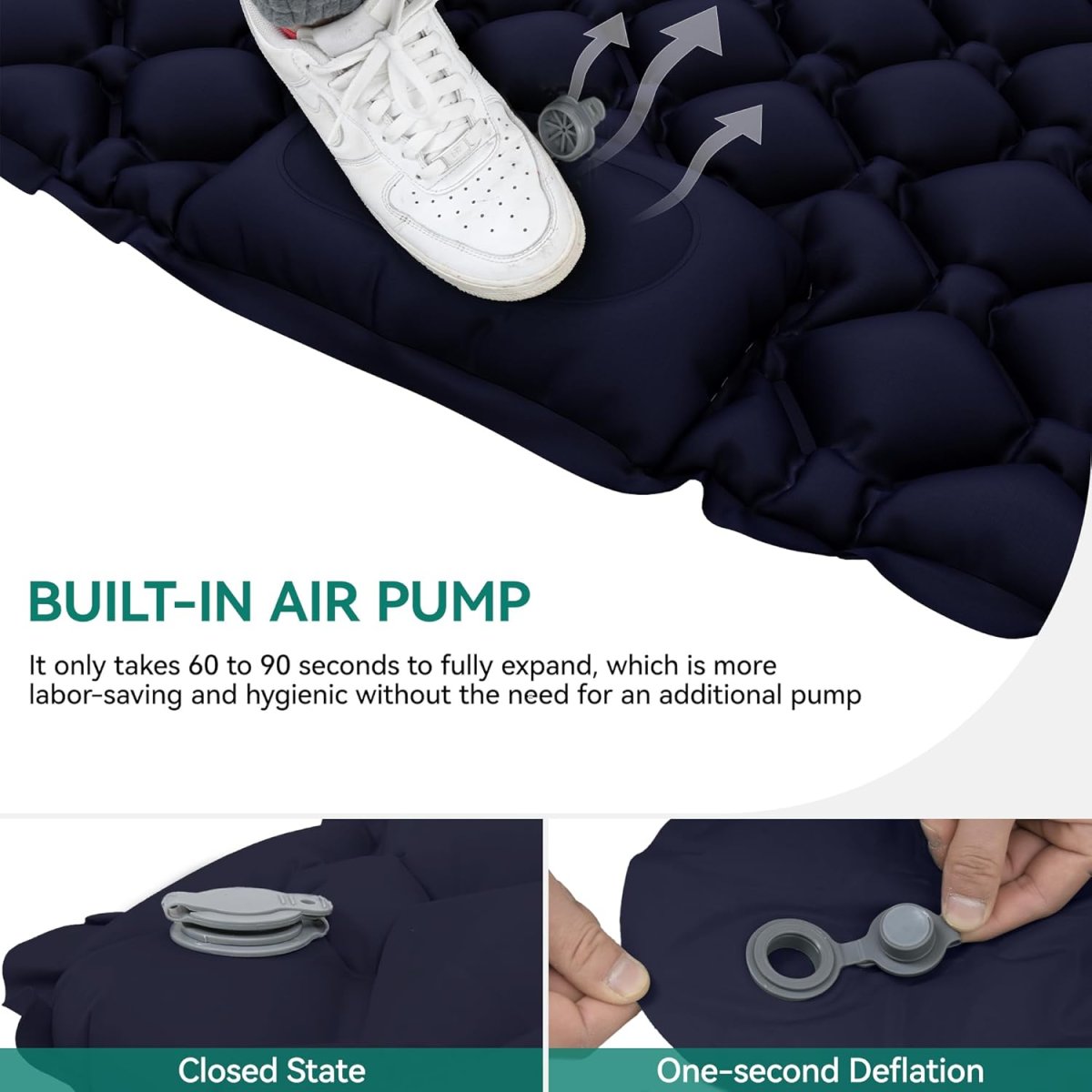 Матрац WCG поєднує зручність, мобільність і простоту використання — підходить для кемпінгу, виїздів на природу та як тимчасове спальне місце.