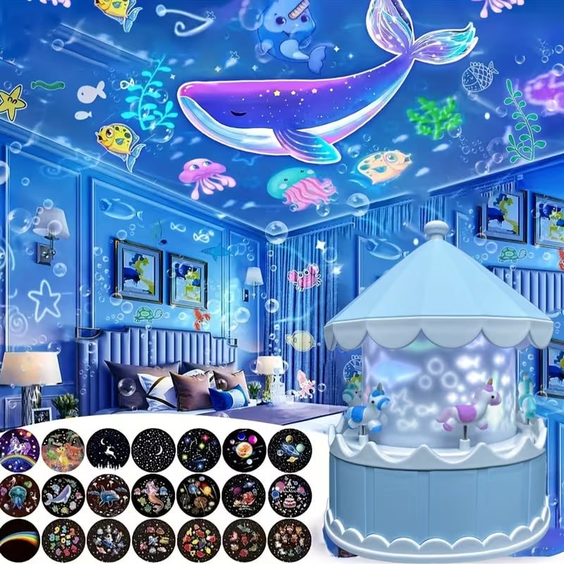 Нічник‑проєктор LED від USB «Карусель» з пультом, 21 слайд, змінні дитячі проєкції