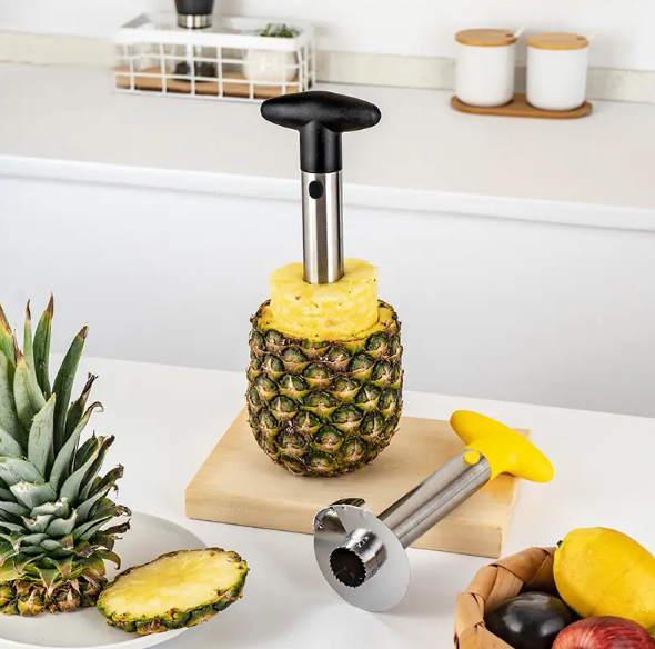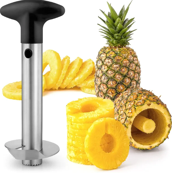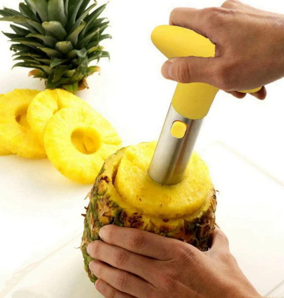 Ніж–слайсер для ананаса — зручний інструмент для нарізування ананаса акуратними кільцями та одночасного вирізування серцевини. Підходить для швидкого приготування фруктових нарізок і щоденного використання на кухні.