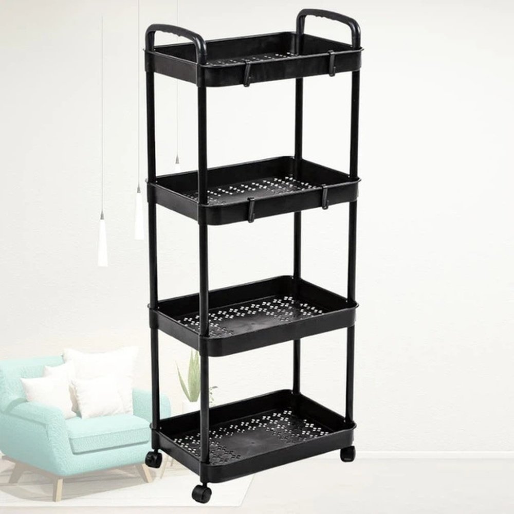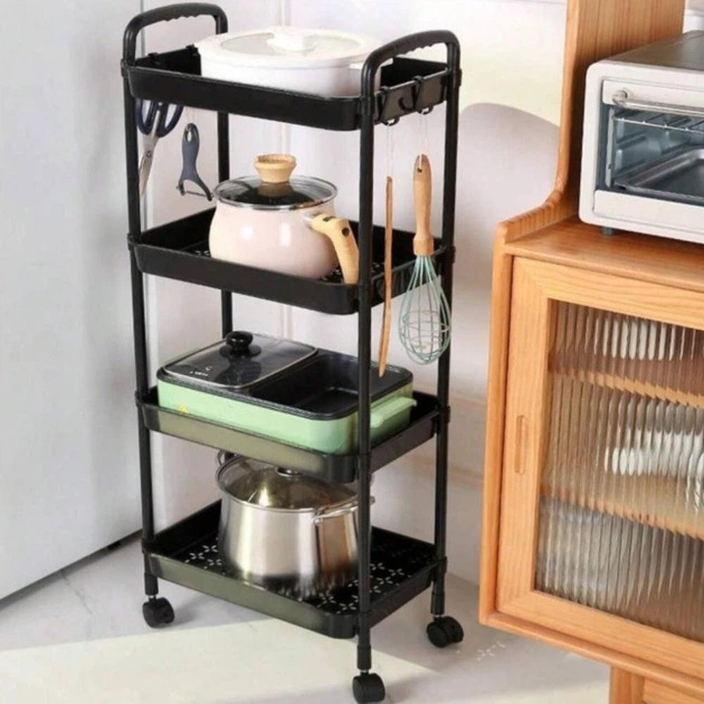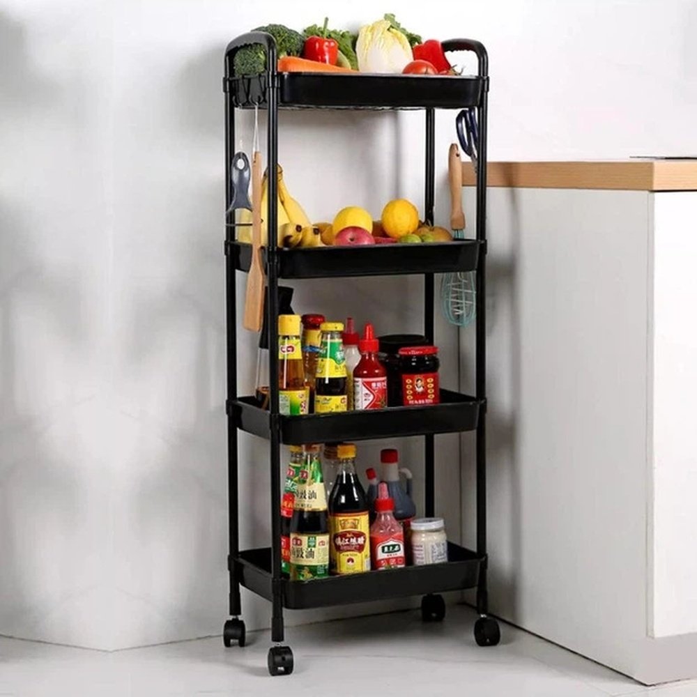 Органайзер-етажерка на коліщатках 4 яруси з гачками для дому та кухні SKLM-11