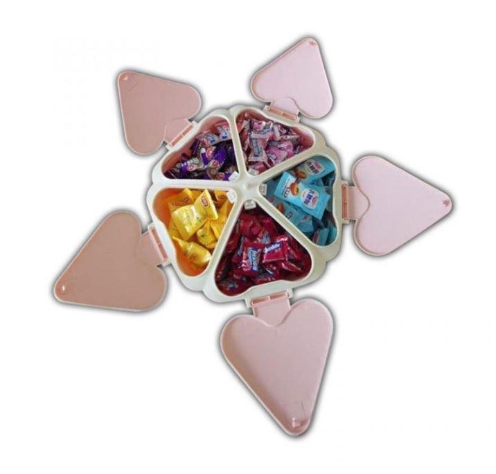 ```Органайзер для солодощів Peach Heart Shape — зручна мінажниця-цукерниця у формі серця на 5 відсіків. Підійде для подачі цукерок, печива, горіхів та інших закусок. Має підставку для телефону, що робить використання особливо комфортним під час перегляду відео чи спілкування.