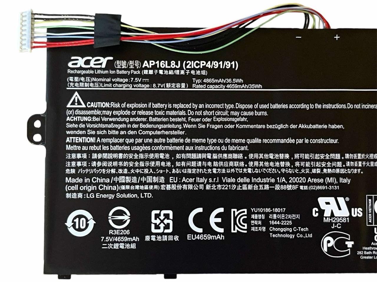 - Original батарея AP16L8J для Acer Chromebook Spin CP311-3H-K2RJ CP311-2H-C679 CP513-1HL CP513-1H 7.5V 4865mAh(36.5Wh)-