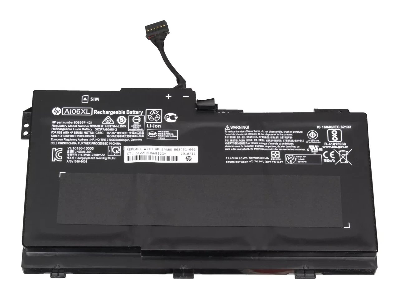 - Оригінальна батарея для ноутбука HP ZBook 17 G3 11.4V 8420mAh 96Wh Black AI06XL-