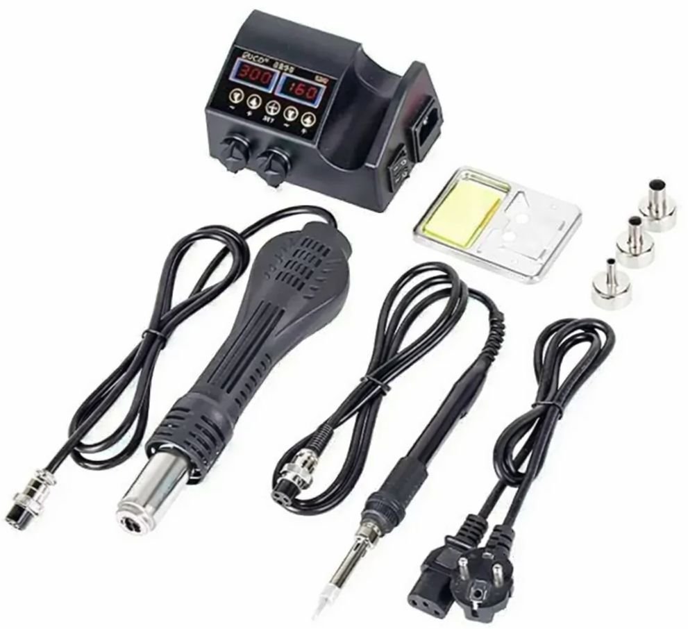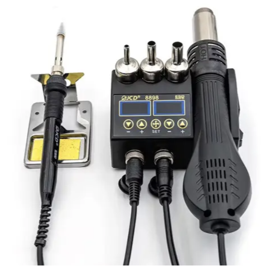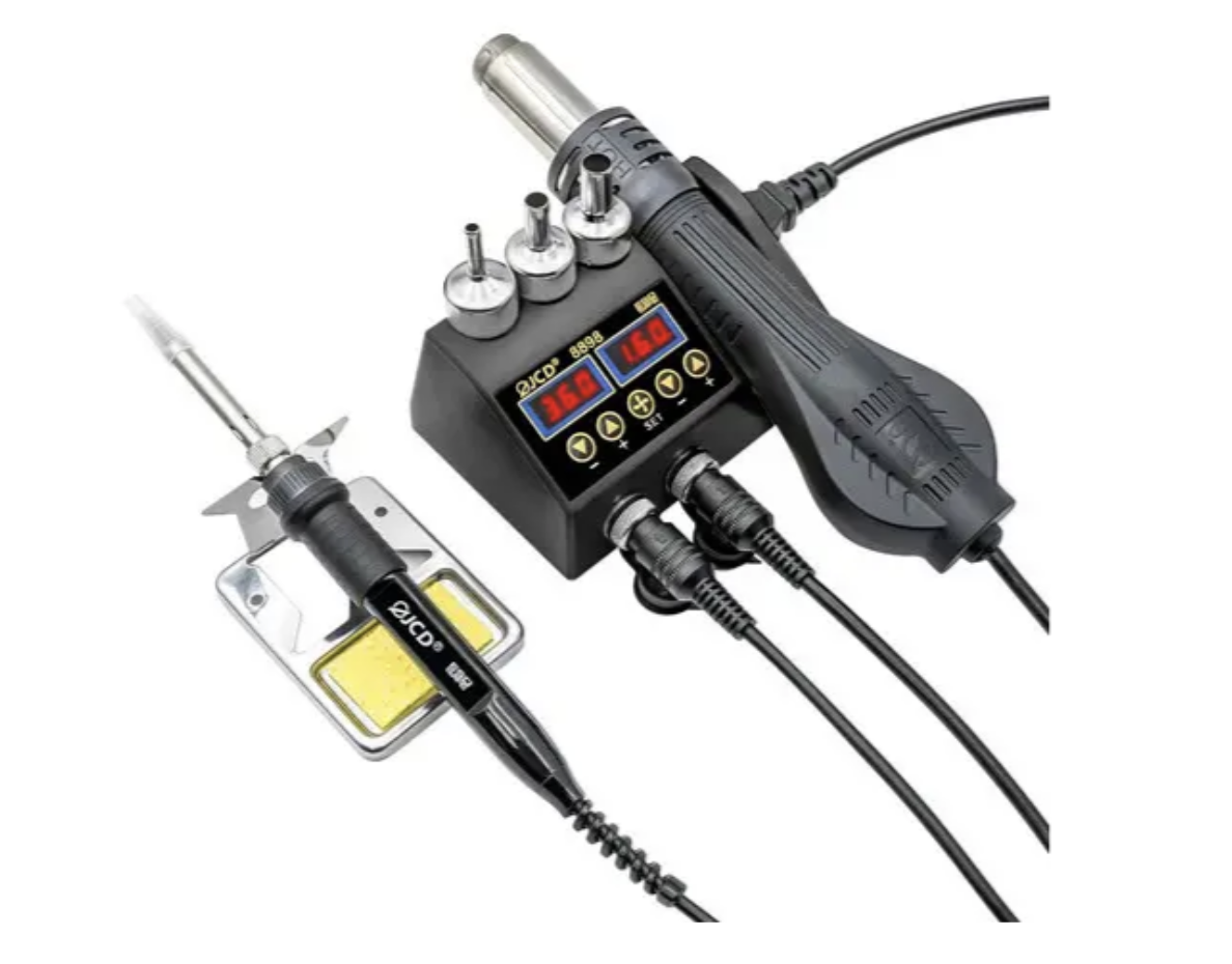 Паяльна станція Micro JCD 8898 80Вт з термофеном — цифровий паяльний набір для щоденного використання. Підійде для ремонту та монтажу електроніки, де потрібні стабільний нагрів і зручне керування. Це якісний і надійний інструмент для регулярної роботи.