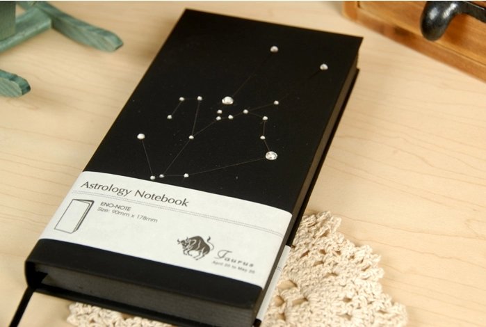 Подарунковий блокнот «Телець» (сузір’я зодіаку), 240 арк., 90×180×18 мм, чорний