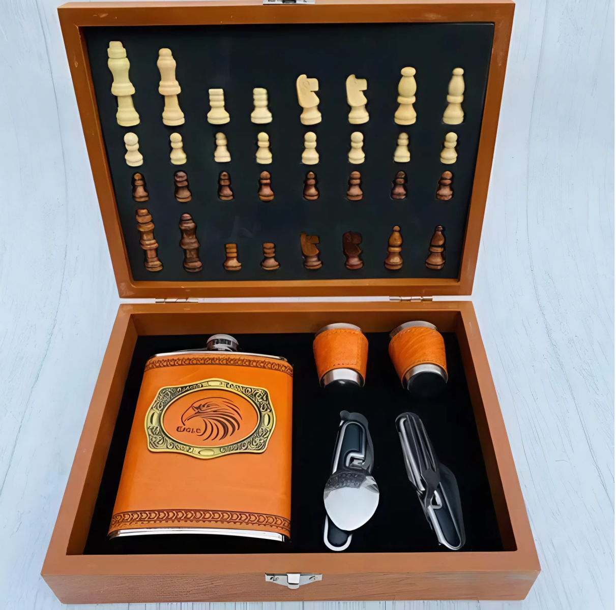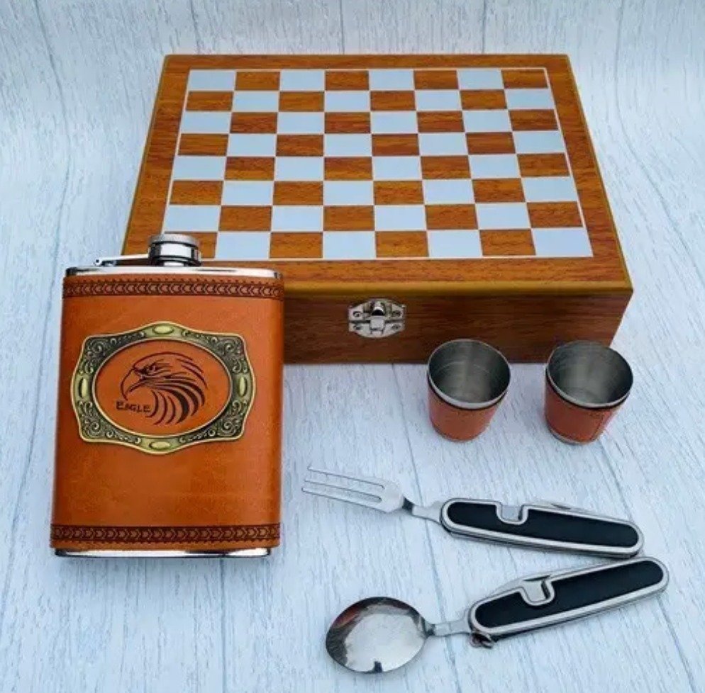 Подарунковий набір XL-5507: шахи (настільна гра) + фляга, аксесуари для відпочинку