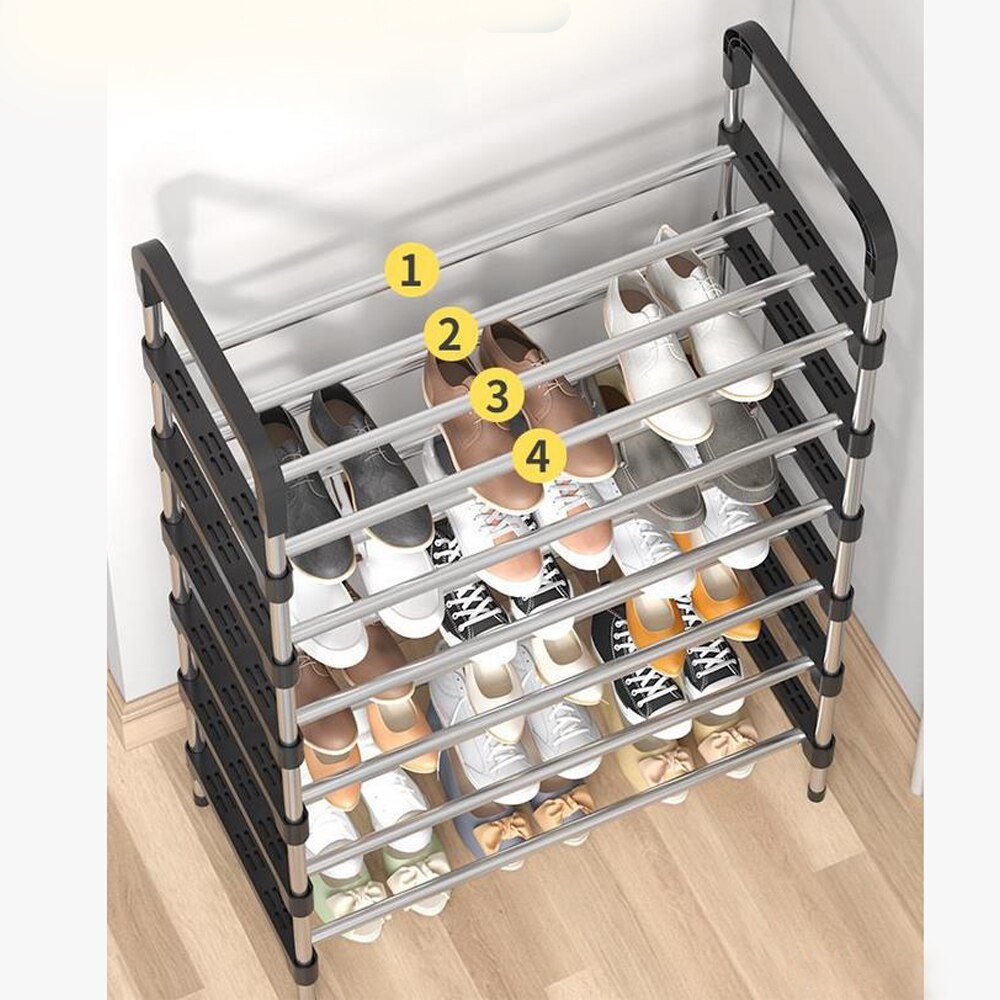 Полиця для взуття NST6 — практичний взуттєвий стелаж для зберігання, який допомагає організувати взуття вдома, у передпокої, гардеробній чи коморі. Завдяки багатоярусній конструкції полиця економить місце та підтримує порядок. Підходить для щоденного використання як надійне рішення для зберігання взуття.