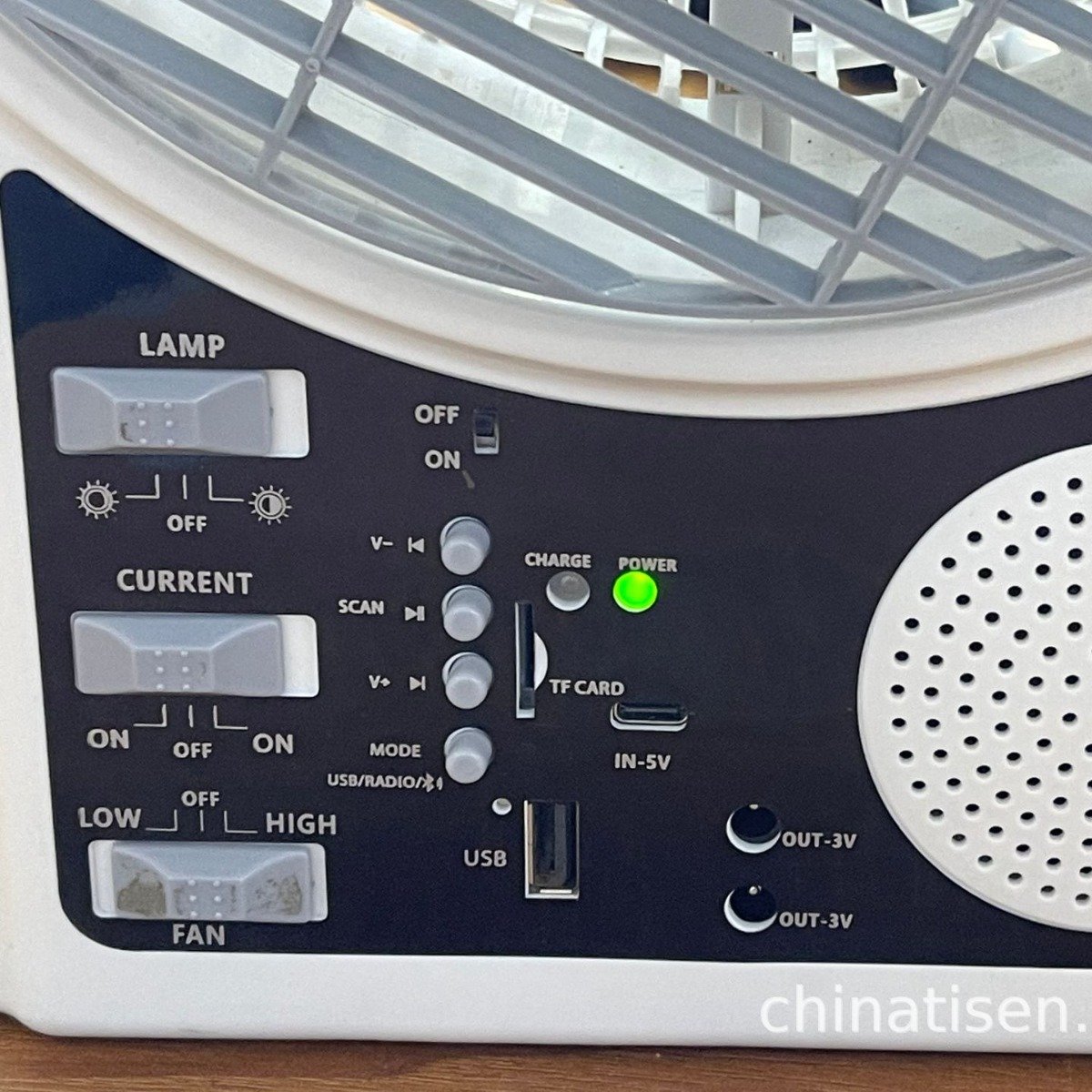 Портативний вентилятор 4в1 8″: сонячна панель, акумулятор, Bluetooth, радіо та LED-підсвітка