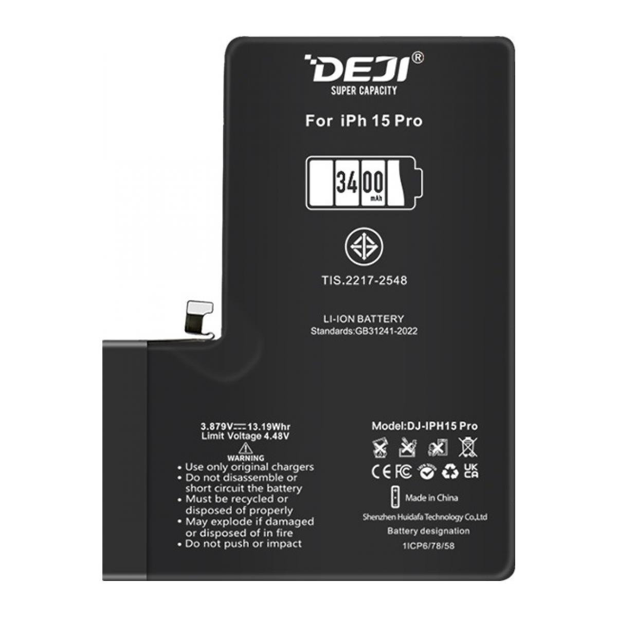 - Обираючи посилений акумулятор 3400 mAh DEJI, ви отримуєте оптимальне поєднання ємності, потужності та безпеки для Apple iPhone 15 Pro A3101.