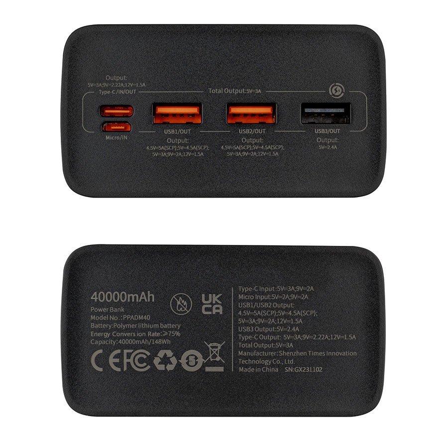 - Велика ємність 40000mAh дозволяє багаторазово заряджати смартфони, планшети, навушники та інші пристрої під час подорожей або в офісі.
