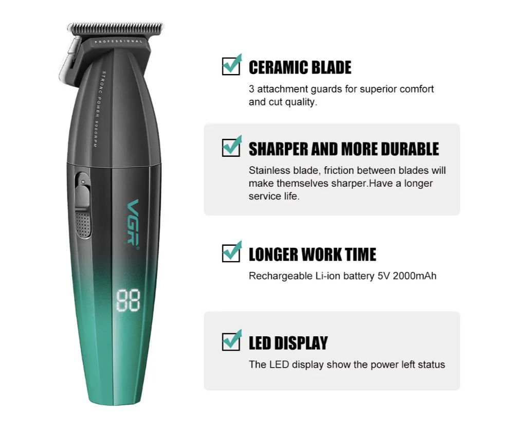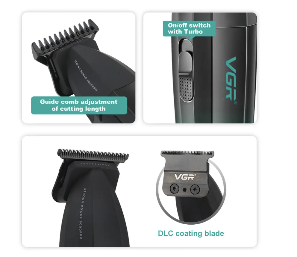 Професійний тример VGR V-906 з T-подібним ножовим блоком і потужним мотором для стрижки