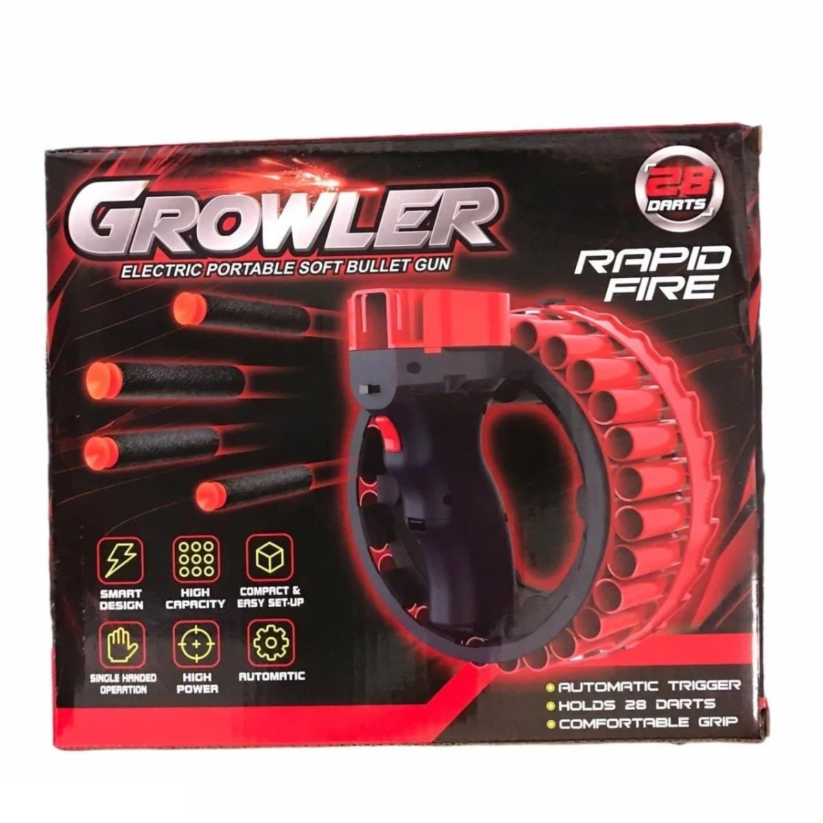 Автоматичний бластер-кулемет Growler H01 — дитяча іграшкова зброя з автоматичним режимом стрільби, що працює від акумулятора. Модель розрахована на 28 зарядів та підходить для активних ігор удома й на вулиці. Це якісний і надійний варіант для щоденного використання.