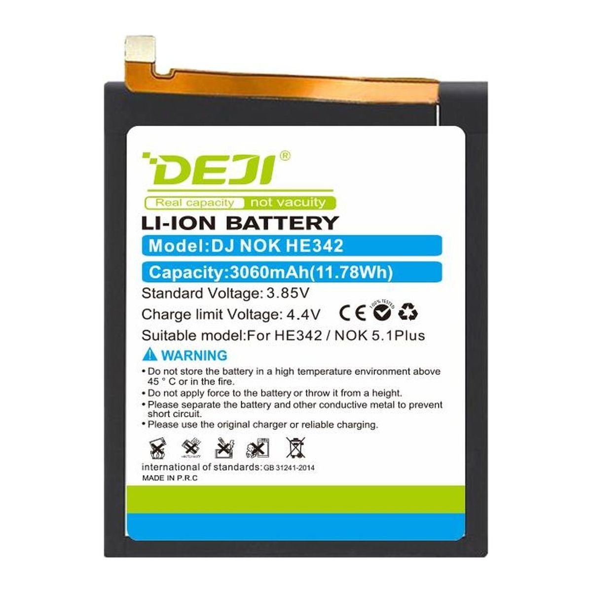 Переваги батареї DEJI HE342 для Nokia 5.1 Plus 6.1 Plus 3060 mAh
