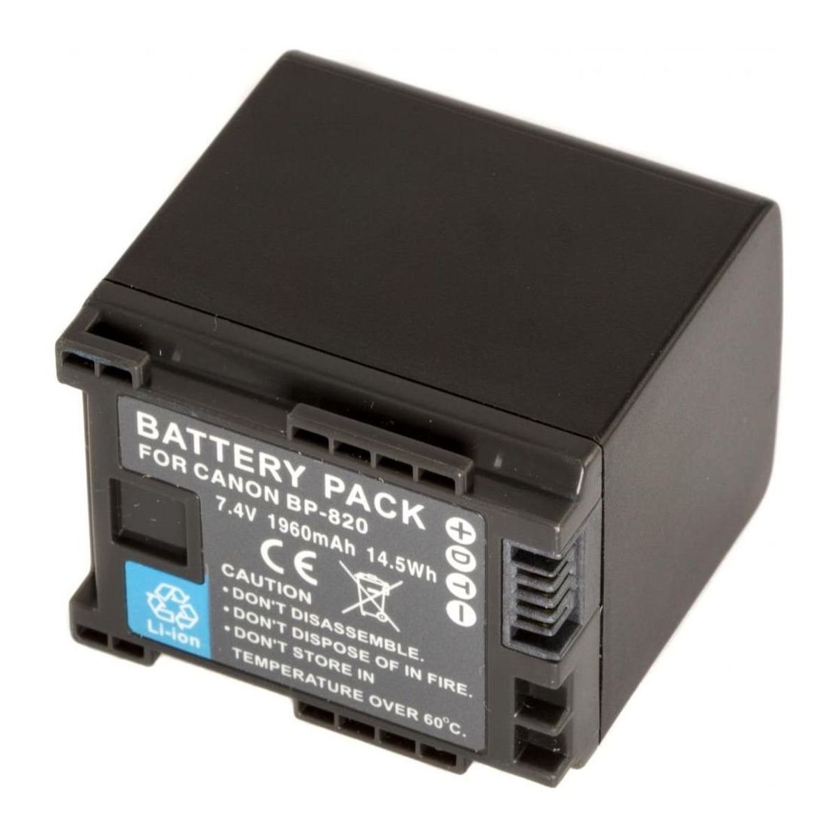 Батарея BP-820, ємністю 1780 mAh, 100% сумісна з оригінальним акумулятором CANON BP-820. Батарея містить «інфо-чіп», який дозволяє відображати час заряду, що залишився, або кількість кадрів на дисплеї камери, і заряджати акумулятор як від оригінального зарядного пристрою.
