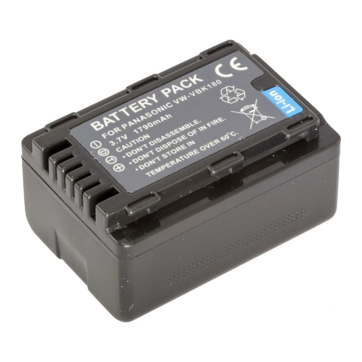 Батарея VW-VBK180, ємністю 1790 mAh, 100% сумісна з оригінальним акумулятором PANASONIC VW-VBK180. Батарея містить «інфо-чіп», який дозволяє відображати час заряду, що залишився, або кількість кадрів на дисплеї камери, і заряджати акумулятор як від оригінального зарядного пристрою PANASONIC VW-BC10