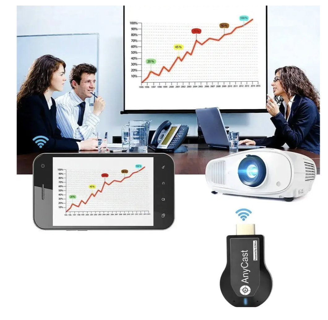 Бездротовий приймач для трансляції екрану AnyCast M9 Plus — компактний Wi‑Fi медіаплеєр для підключення до ТВ і бездротової трансляції зображення та відео зі смартфона на великий екран. Підійде для дому, роботи та щоденного використання: просте підключення, стабільна робота та зручний формат.