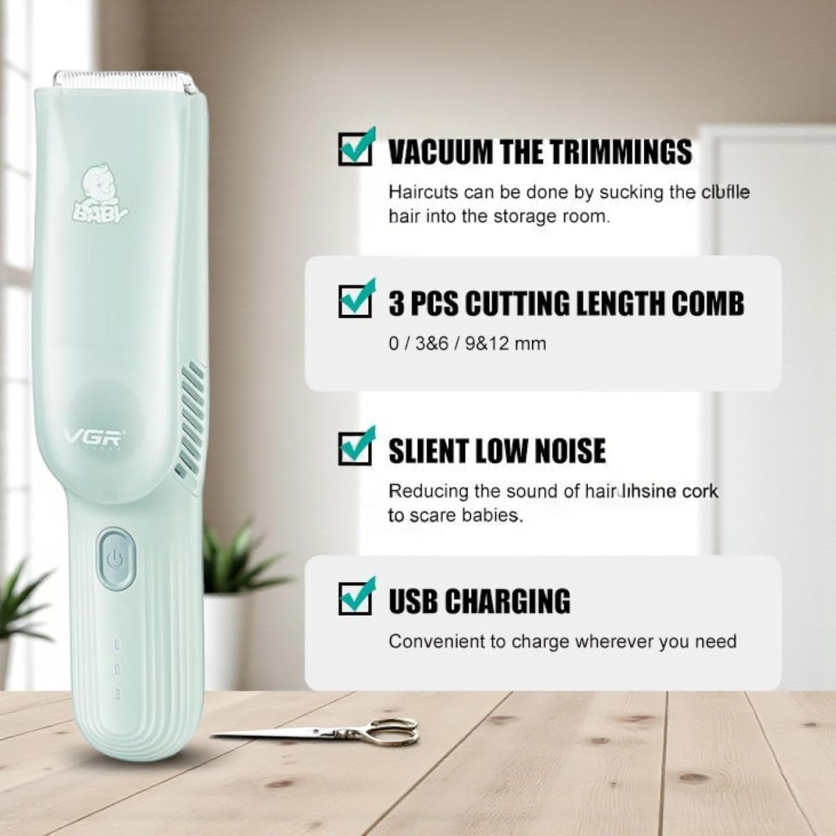 Машинка для стрижки дітей VGR V-155 — дитяча машинка з вакуумним контейнером для збору зрізаного волосся. Практичне рішення для акуратної стрижки вдома: менше волосся на підлозі та одязі, зручніше прибирати після процедури. Підходить для регулярного, щоденного використання та забезпечує надійну роботу.
