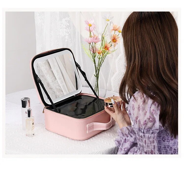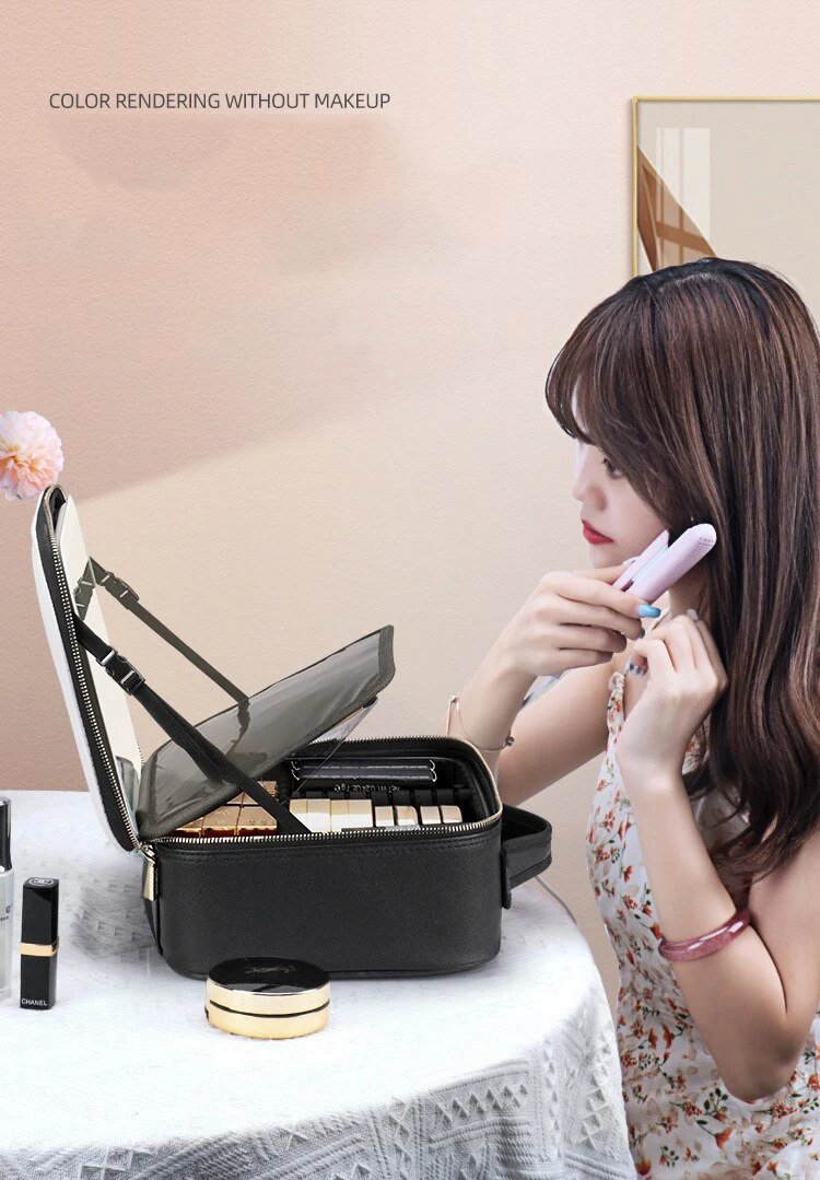 Дорожня косметичка-органайзер із дзеркалом та LED-підсвіткою — портативний бʼюті-кейс для косметики