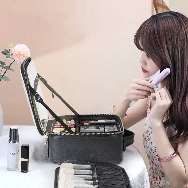 Дорожня косметичка – органайзер із дзеркалом та LED підсвіткою — портативний б’юті-кейс для зручного зберігання та організації косметики вдома й у поїздках. Завдяки вбудованому дзеркалу з LED підсвіткою легко робити макіяж за будь-якого освітлення. Практичний формат підходить для щоденного використання — надійне рішення для акуратного зберігання улюблених засобів.
