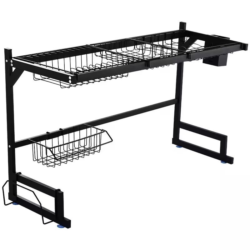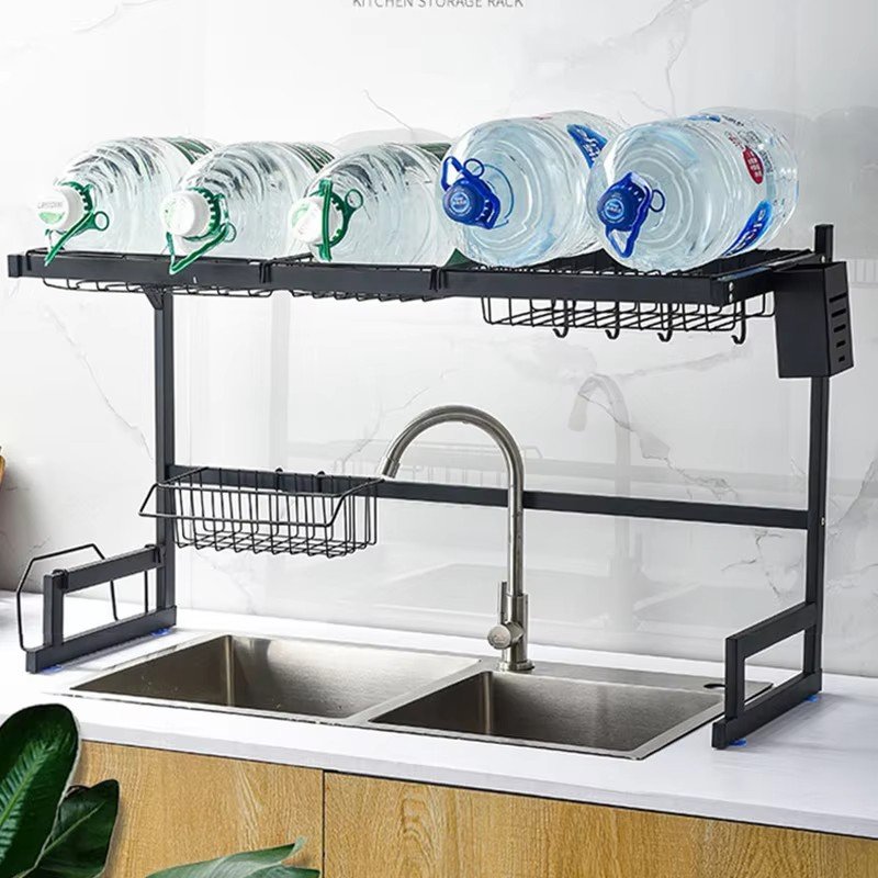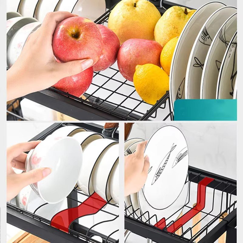 Кухонна стійка для сушіння та зберігання посуду над раковиною — практична металева дворівнева сушарка-органайзер, що допомагає раціонально використати простір над мийкою та підтримувати порядок на кухні. Виготовлена з нержавіючої сталі, підходить для щоденного використання, стійка та надійна.
