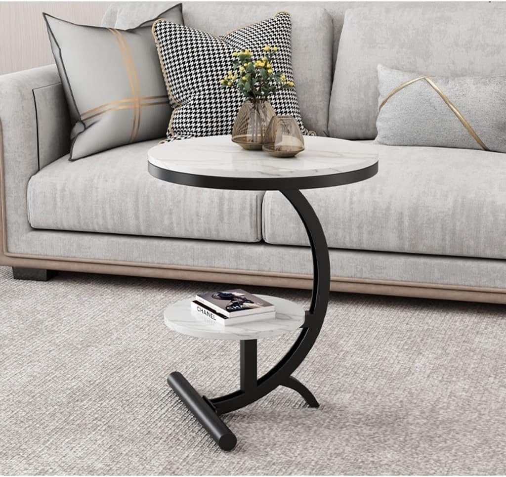 Двоярусний журнальний / приставний столик с-подібної форми 64229 — практичний приставний столик для дивана або ліжка, який зручно підсувається впритул до меблів завдяки С-подібній конструкції. Два яруси дозволяють розмістити найнеобхідніше: зверху — чашку, пульт чи ноутбук, знизу — книги, журнали або дрібниці. Підійде для щоденного використання вдома чи в офісі.