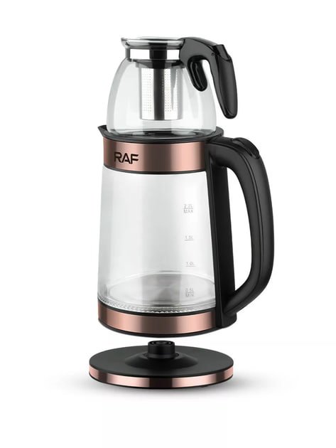 Електрочайник Hoffmans HM-7827 1800W скляний із заварником 2,2 л + 0,5 л для напоїв