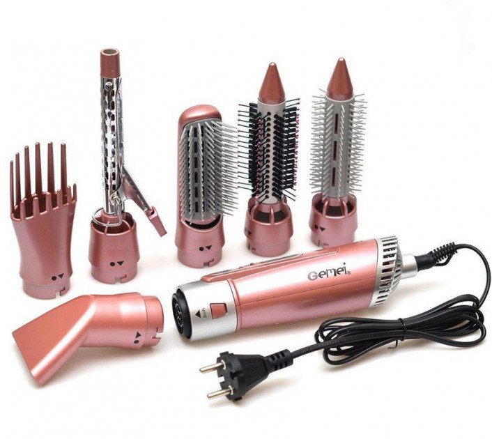 Фен‑мультистайлер 7 в 1 Gemei GM‑4831 — багатофункціональний повітряний стайлер з насадками для сушіння, укладки, вирівнювання волосся та створення об’єму. Практичне рішення для домашнього догляду: один прилад допомагає швидко зробити щоденну укладку та підтримувати охайний вигляд волосся.