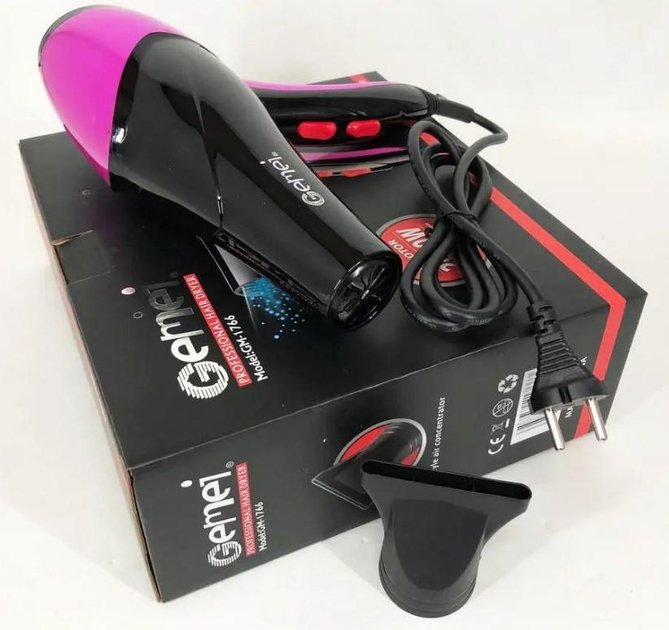 Фен для волосся GEMEI GM-1766 2.6 кВт AC — потужний професійний сушарка для укладки