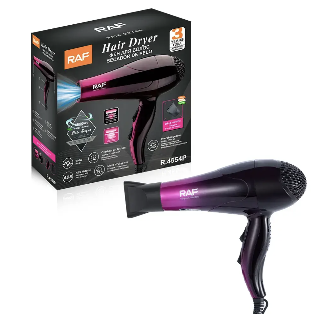 Фен для волосся RAF R.4554 900 Вт — швидке й безпечне сушіння та укладання