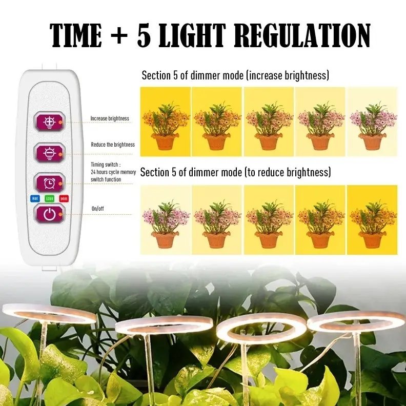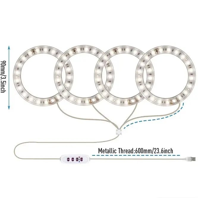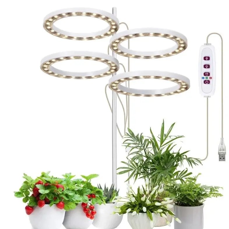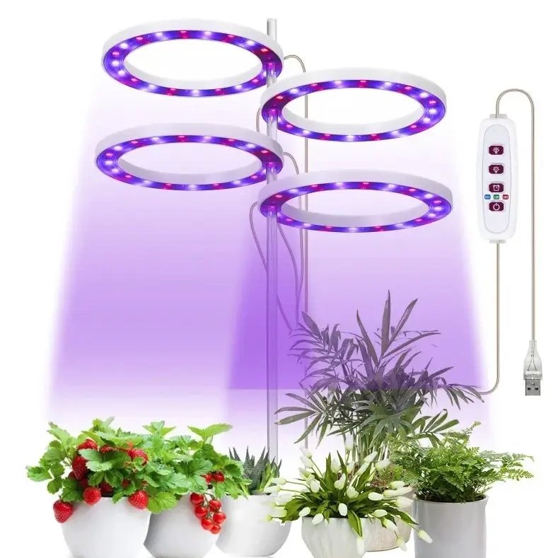 Фітолампа LED MA714 для росту рослин, 4 світлодіодні кільця, регульований напрямок світла
