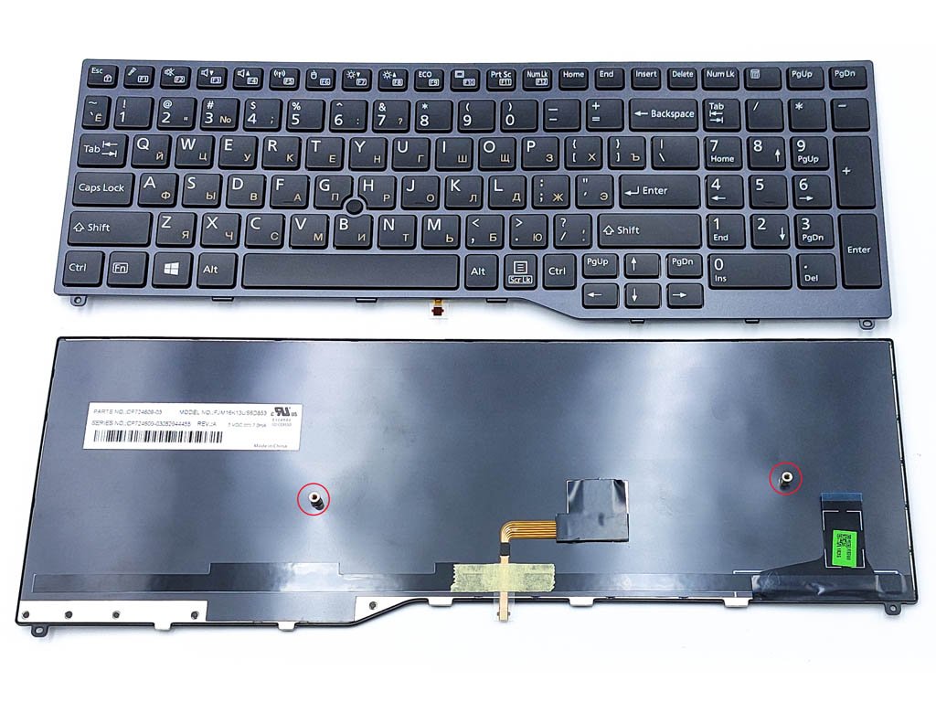 Клавіатура для Fujitsu Lifebook E458/E459/E558/E559/E4511/E5510/E5511/U757/U758/U759/U7510 — RU, чорна, з рамкою та Pointstick